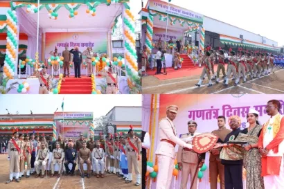 रायगढ़, 26 जनवरी 2026/ जिले में 77वां गणतंत्र दिवस हर्ष, उल्लास एवं देशभक्ति वातावरण में मनाया गया। शहीद कर्नल विप्लव त्रिपाठी स्टेडियम में आयोजित जिला स्तरीय मुख्य समारोह में आदिम जाति विकास, अनुसूचित जाति विकास, पिछड़ा वर्ग विकास, अल्पसंख्यक विकास विभाग, कृषि विकास एवं किसान कल्याण मंत्री तथा जिले के प्रभारी मंत्री श्री रामविचार नेताम ने प्रातः 9 बजे राष्ट्रीय ध्वज फहराया। इसके पश्चात राष्ट्रगान और वंदे मातरम् का सामूहिक गायन किया गया तथा पुलिस बल, होमगार्ड, एनसीसी कैडेट्स एवं स्काउट गाइड की टुकड़ियों द्वारा मुख्य अतिथि को सलामी दी गई। मुख्य अतिथि ने कलेक्टर श्री मयंक चतुर्वेदी एवं वरिष्ठ पुलिस अधीक्षक श्री शशि मोहन सिंह के साथ परेड का निरीक्षण किया। समारोह में 11 प्लाटूनों द्वारा अनुशासित एवं आकर्षक मार्चपास्ट प्रस्तुत किया गया, जिसके पश्चात मुख्य अतिथि ने परेड कमांडरों से परिचय प्राप्त किया। इस अवसर पर आकाश में तिरंगे गुब्बारे छोड़े गए तथा वीर शहीदों के परिजनों को सम्मानित किया गया।